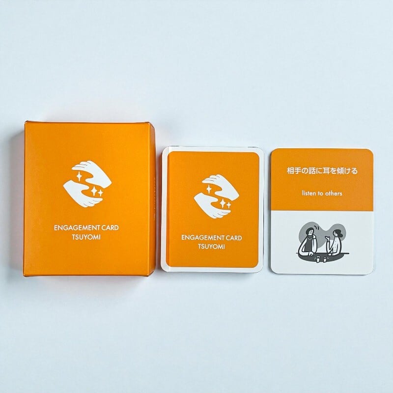 「エンゲージメントカードツヨミ」は、90枚の“動詞で表現された強み”から、自分らしさや他者の魅力を見つけていくカード型ツールです。